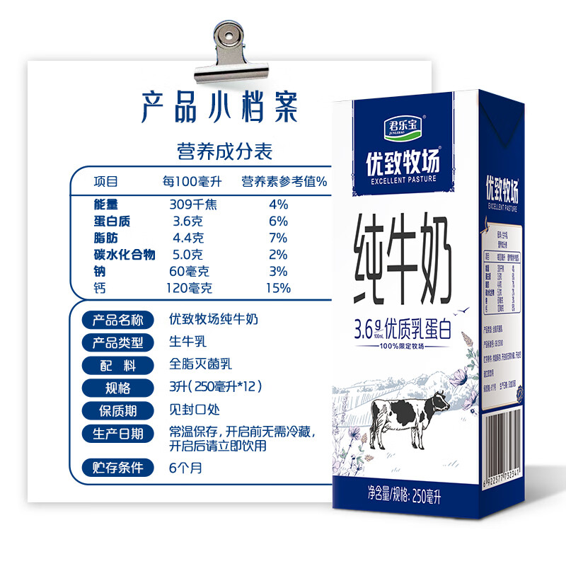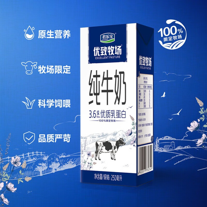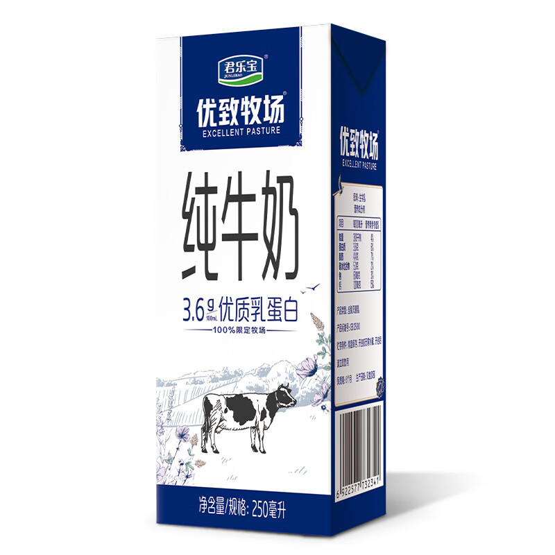 君乐宝优致牧场纯牛奶(原味)利乐砖250ml*12盒