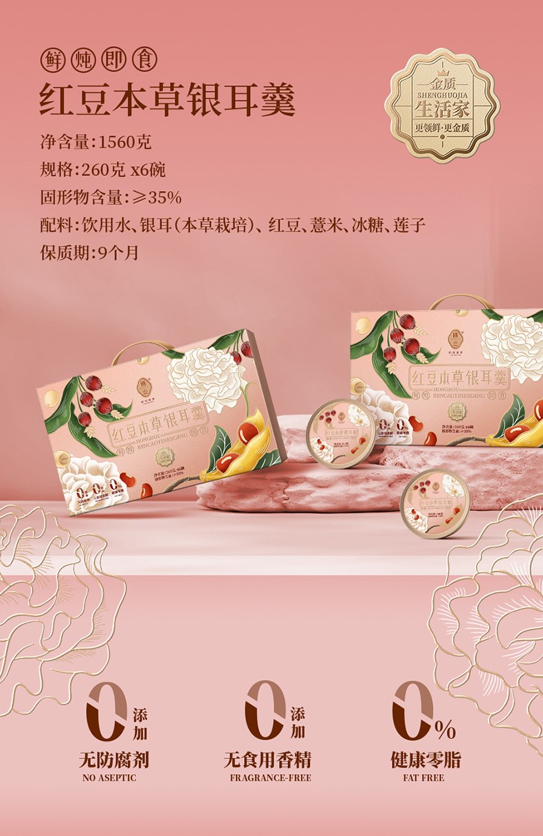 圃也家红豆本草鲜炖银耳羹1560g