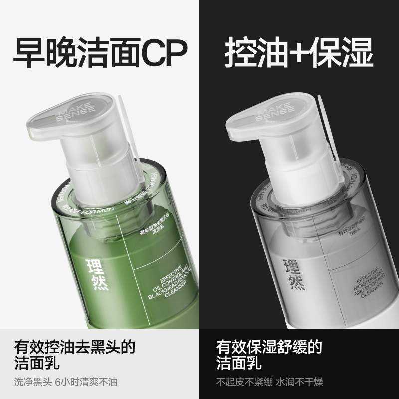 理然男士控油补水洗面奶组合氨基酸去黑头油皮保湿洁面乳100g*2