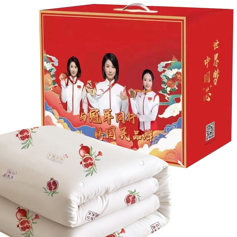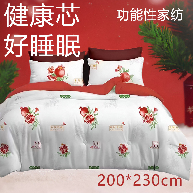冬季大被子多财多福石榴花色冬被柔肤柔软亲肤排汗透气家用婚庆200*230cm/张