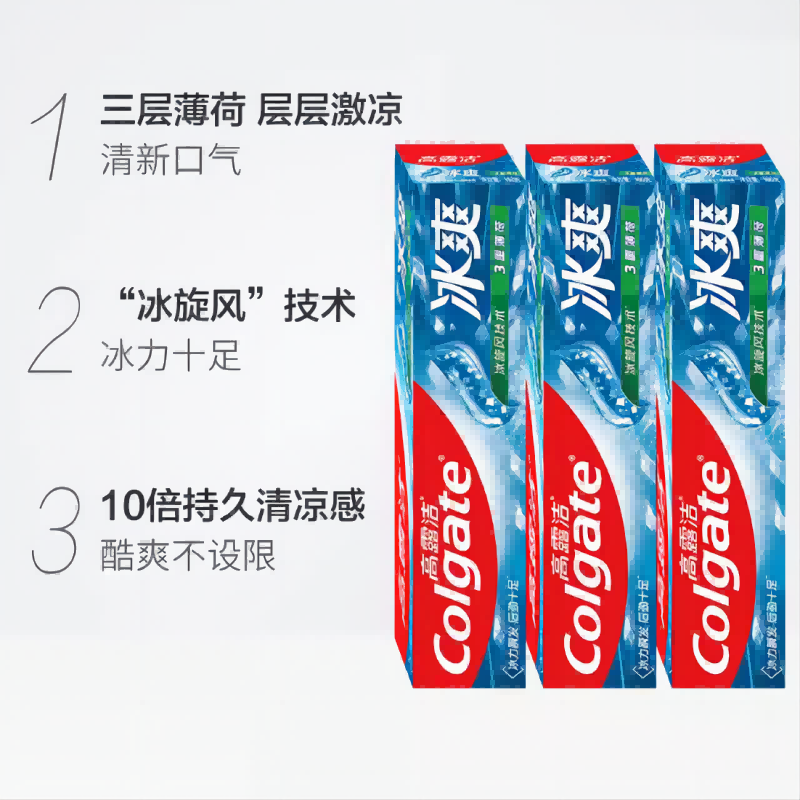 高露洁冰爽牙膏三重薄荷 180g*3
