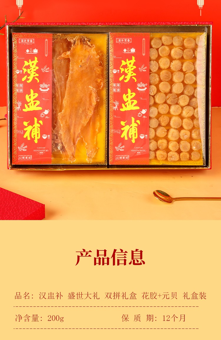 汉盅补 盛世大礼 双拼 花胶+大粒元贝-礼盒装 200克