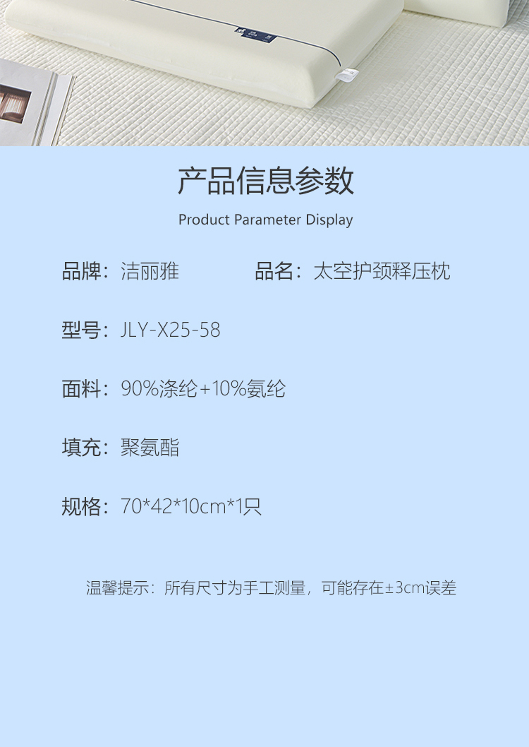 洁丽雅太空护颈释压枕(亚朵同款)JLY-X25-58枕头70*42*10cm*1只
