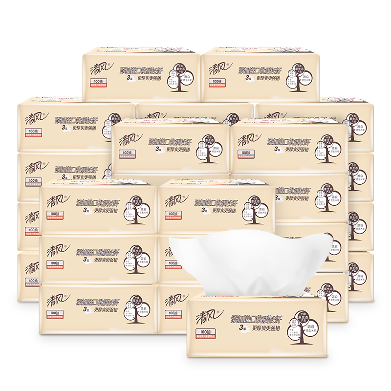 清风萌宠系列亲肤抽纸3层100抽24包/箱AR10SBY+清风原木金装4层卷筒卫生纸125g*10卷/提(提装)*2提