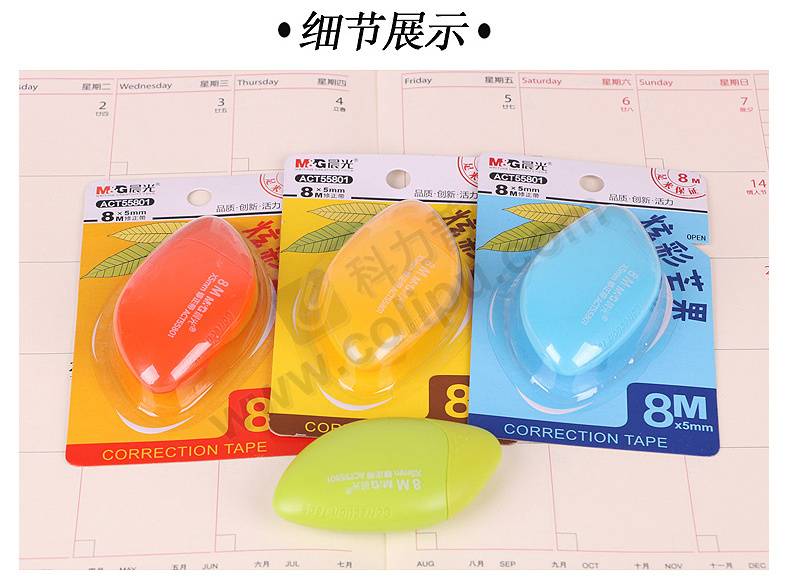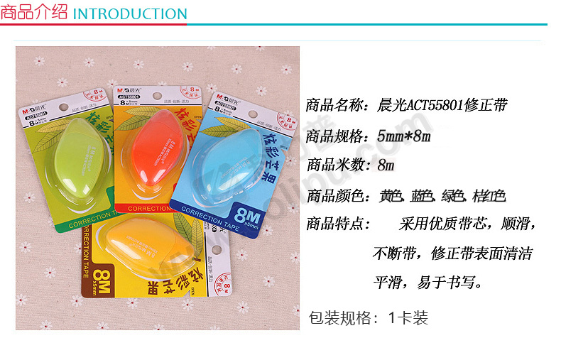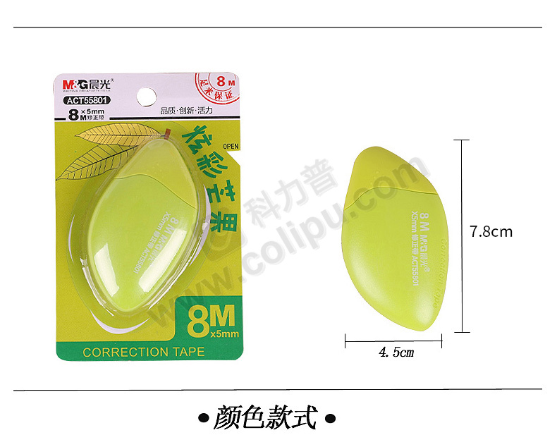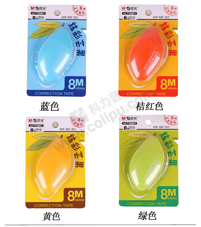 晨光 M&G 修正带 ACT55801 5mm*8m (黄色、蓝色、绿色、桔红色 颜色随机) 1个/卡 8m×5mm 树脂