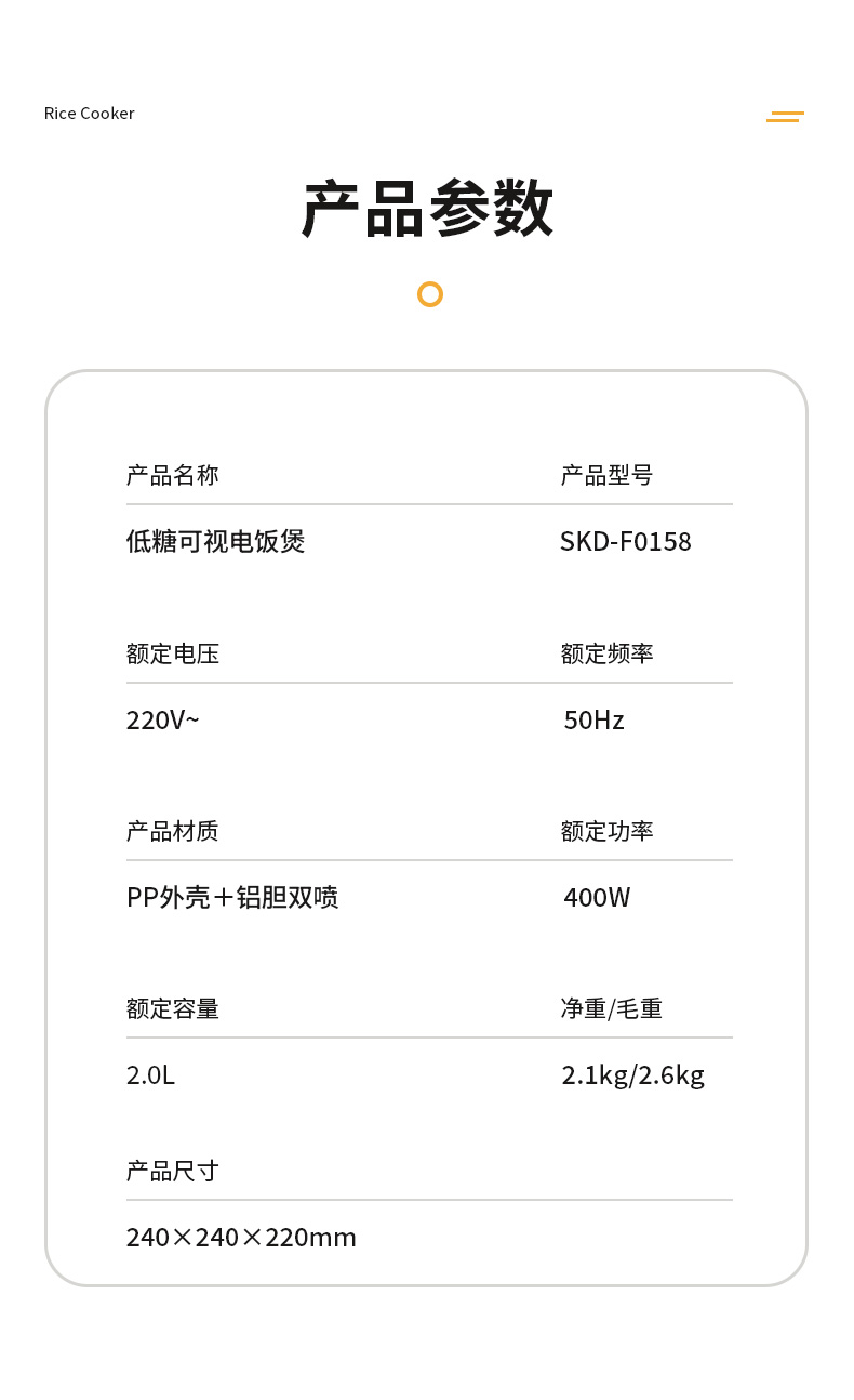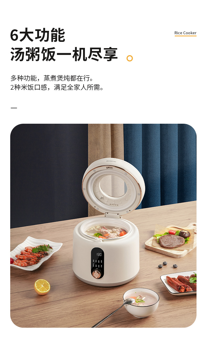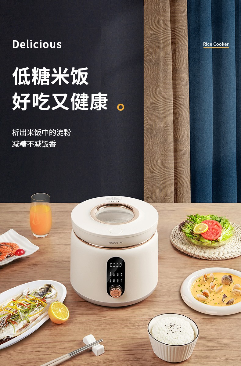 思嘉思达低糖可视电饭煲SKD-F0158多功能预约蒸饭锅电饭锅2L容量